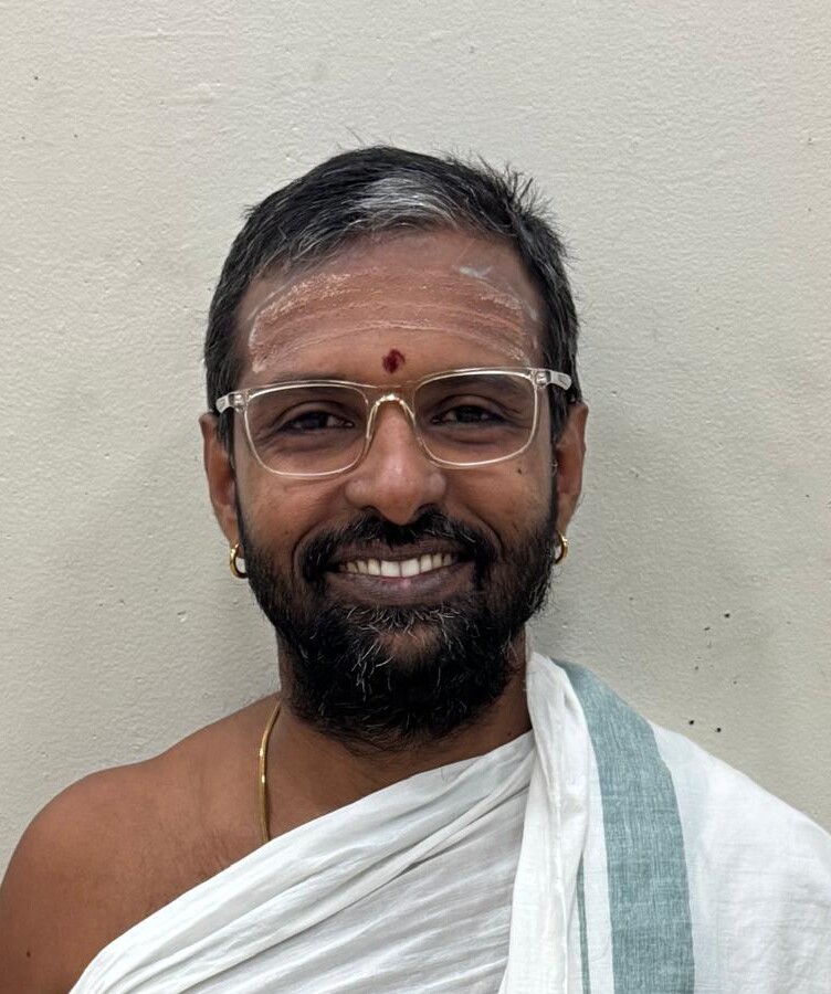 Sri Shekar Santhanam is a Tamil Smarta Vaidhika priest with over nineteen years of experience in performing Apasthambam, Bodhayana Karmas and Veda Parayanam. He has 19 years of experience in performing Apasthambam, Bodhayana Karmas and Veda Parayanam. He is a certified Kramapati in Krishna Yajur Vedam. He was born in a traditional vaidhika family and completed 8 years of Krishna Yajur VedaKramantham from Sri Sankara Gurukula Veda Patasala (Veda Bhavan – Secundrabad), Telengana, India. He is well trained in vaidhika samskaras like marriage, Upanayanam (Hindu rite of passage ritual), Gruhapravesam (religious ritual when a person moves into a new house), Sathabishegam (the set of poojas and rituals performed when a person completes 80 years) and Apara Kriyas (last rites including funeral service). He is well versed in Veda parayanam. He also has a strong knowledge of Agamas, Upanishads, Shastras, and other Hindu religious texts. He served as a temple priest in the esteemed Sri Sarva Priya Mahaganapathi Seva Samithi, Chennai for 6 years. He worked a s a priest in the Asthika Seva Samithi for nine years and before coming to SSVT was working in Sri Valampuri Vinayagar Aalayam for the last 4 years. Sri Shekar Santhanam joined SSVT as smarta Vaidhika in May 2025. He speaks Tamil, Telugu and English.